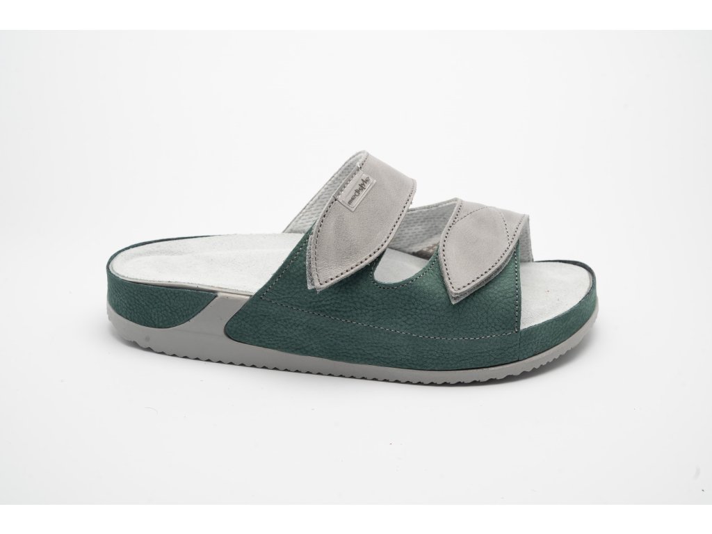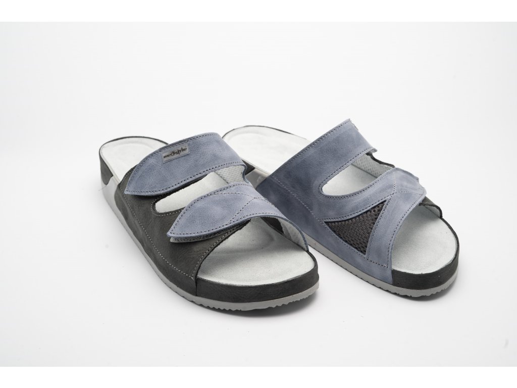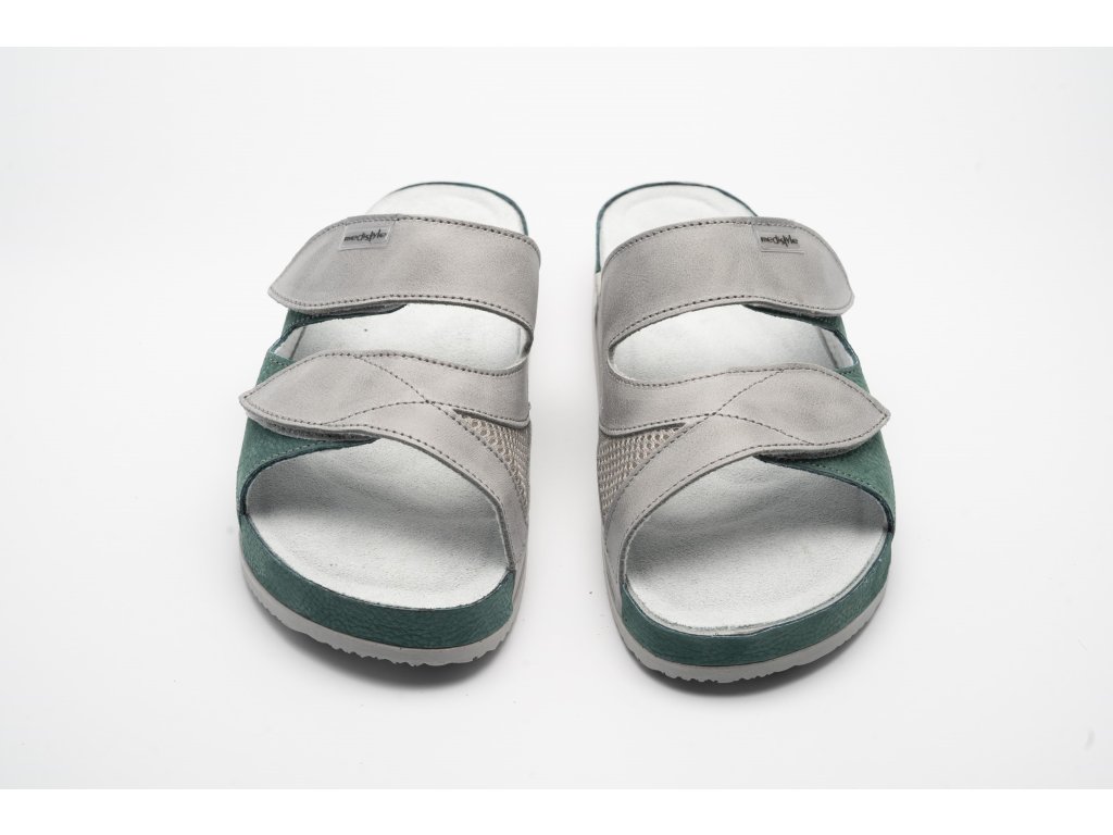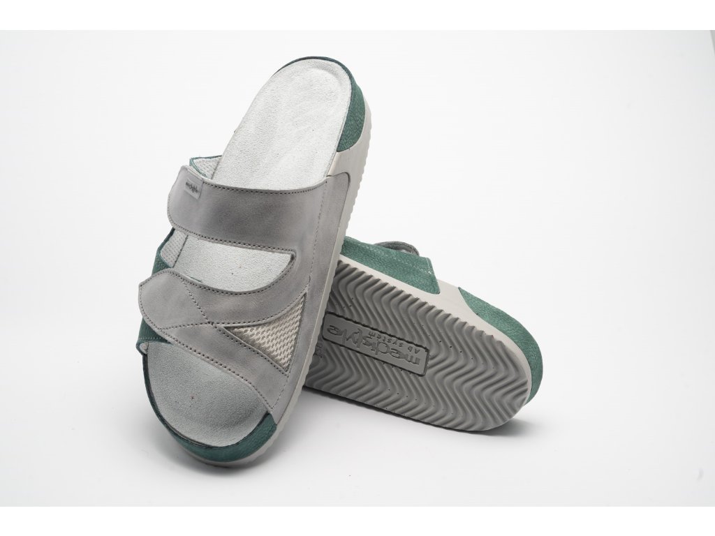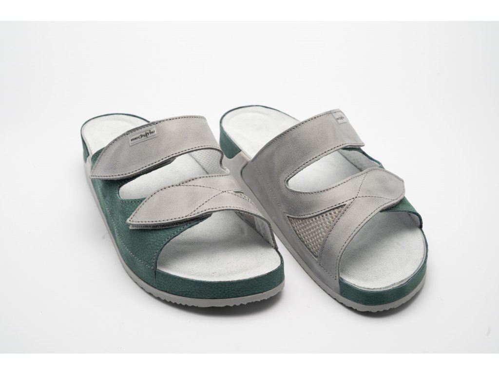 Střih obuvi je v místě prstních kloubů odlehčený 3D textilií MESH, která je lehká, prodyšná a přizpůsobí se případným deformitám. Funkční a nadčasový design podešve s podporou podélné klenby a anatomickým tvarováním je ideální volbou při ploché noze. Vnitřní stélka zajišťuje vhodné hygienické podmínky a variabilitu vrchových pásků umožňuje velcro/suchý zip.