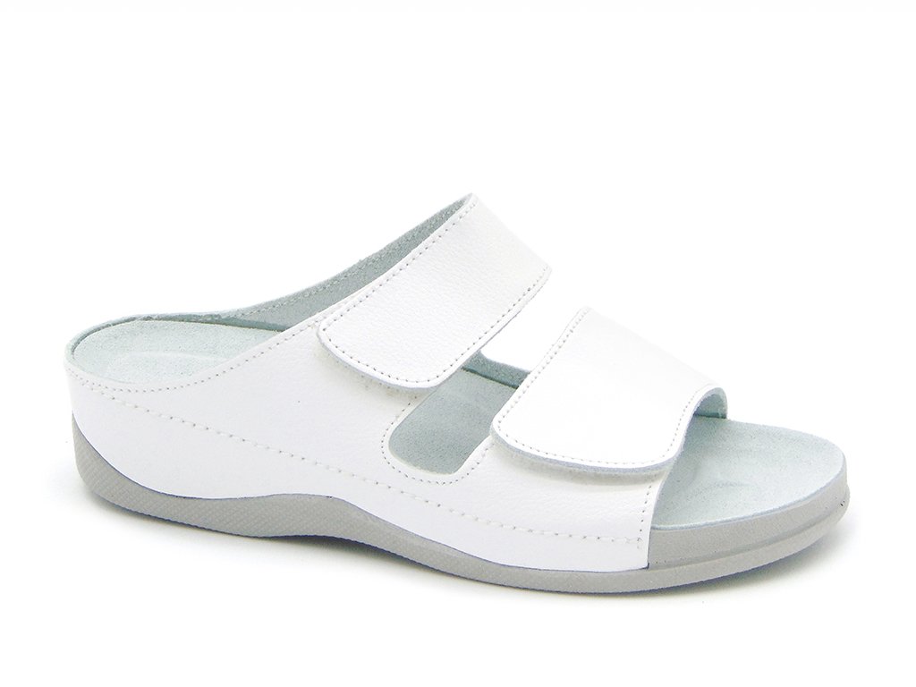 Pantofle Petra jsou ideální volbou pro osoby, které potřebují pohodlnou pracovní obuv pro širší nohy. Anatomicky tvarovaná podešev je strukturovaná tak, aby poskytovala oporu pro chodidlo, správnou posturu a komfort při chůzi. Tento model je navržen pro pracovní prostředí, kde je důležitá stabilita a pohodlí během dlouhých pracovních směn.
